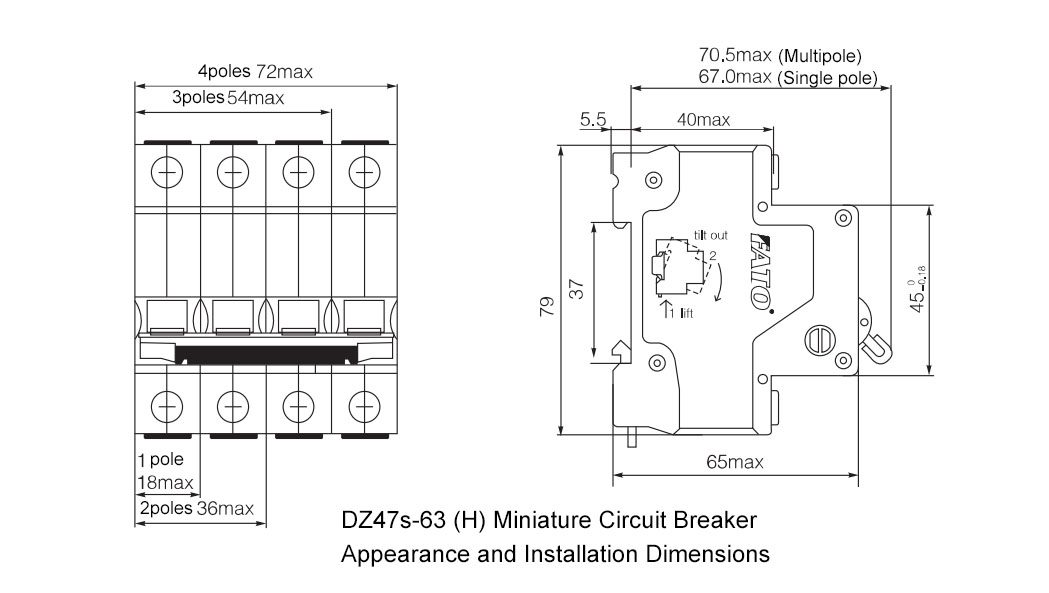 O disjuntor miniatura da série DZ47S-63 (H) foi projetado para proteger contra sobrecargas e curtos circuitos em sistemas elétricos com uma frequência CA de 50Hz, uma classificação de tensão máxima de 230/400V e uma classificação de corrente de até 100a. Além disso, pode ser usado para troca ocasional de linhas e equipamentos em condições operacionais normais. Este produto está em conformidade com os seguintes padrões: IEC60898-1 、 GB10963.1
